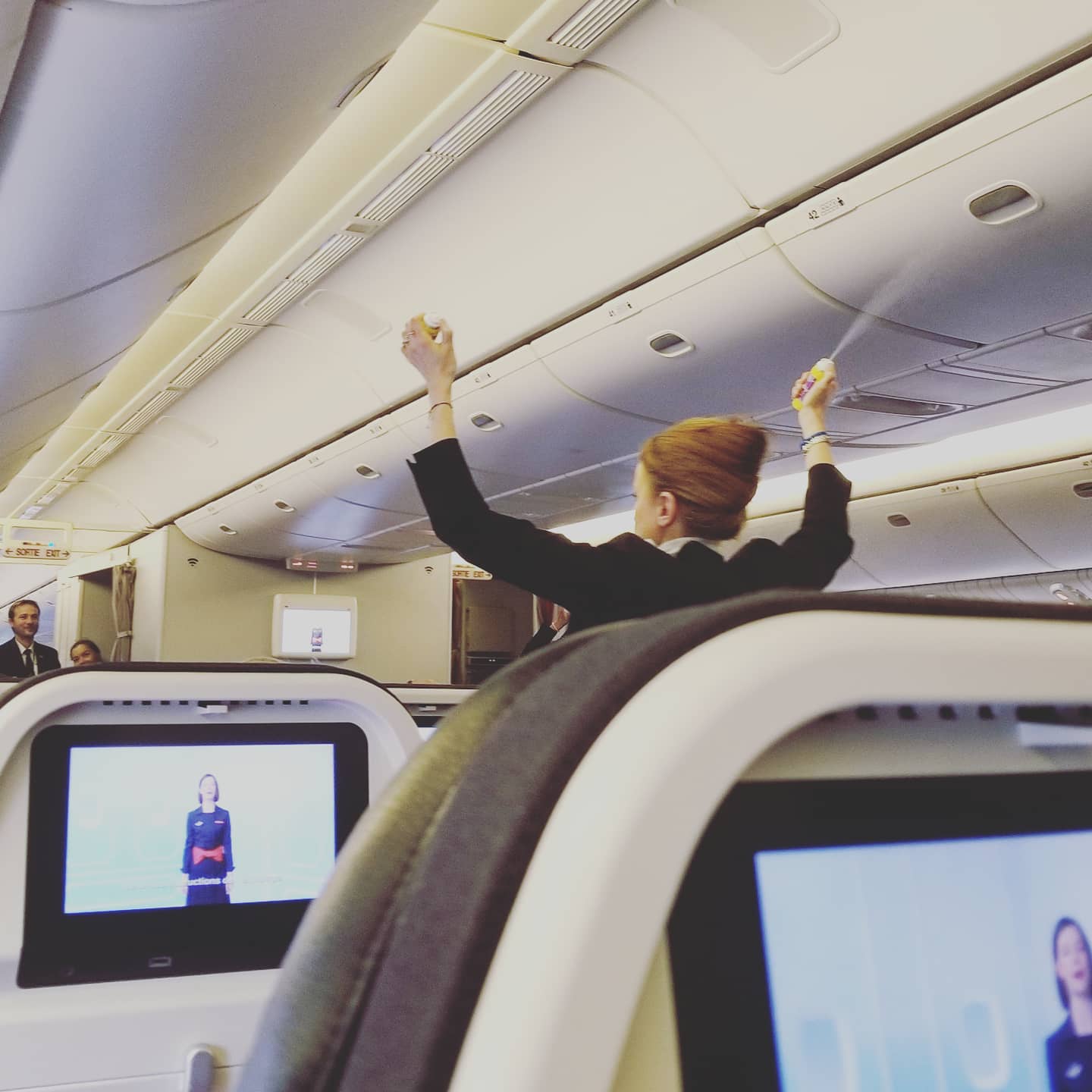 Here’s something I’ve never seen on a plane yet: stewardesses marching up and down the aisles spraying the cabin with insecticide. We were assured via announcement that this is required by regulation and poses no danger to our health. …. …… ….. huh! Welp. We’re all strapped in now. One more 9 hour flight between me and Mumbai – Let’s do this.