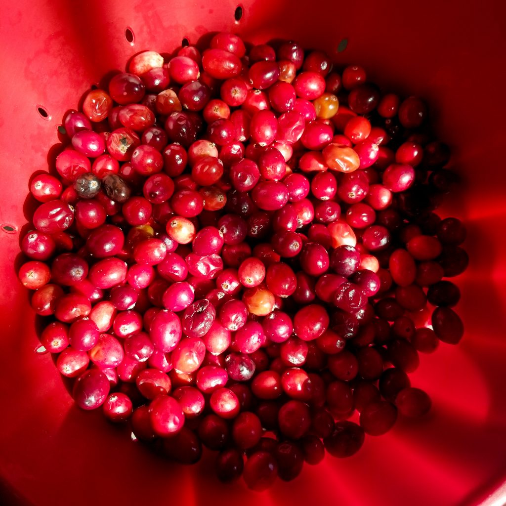 NOTE: This will take a few minutes, but it is worth it, and here's why: while I'm cutting these babies in half, I'm also checking them for ripeness. I don't want spoiled cranberries in my beautiful bread! So, if I came across one that was too brown or too soft to stand up to the knife, it went into the compost bin with love. Once I'd chopped 2 full cups, I was ready to get started knowing that every bite would taste amazing!